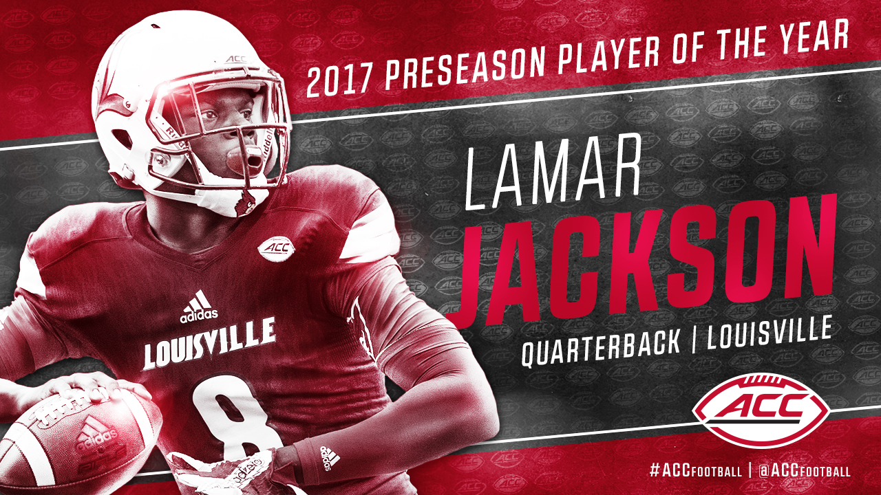 Reigning Heisman Trophy winner Lamar Jackson of Louisville was chosen to repeat as ACC Player of the Year after a record-setting 2016 campaign in which he averaged 393.4 yards per game of total offense and accounted for 51 touchdowns, both ACC single-season records. His 1,571 rushing yards and 21 rushing touchdowns were also ACC records for a quarterback.